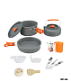 Кастрюля (котелок), чайник и сковорода имеют складные термостойкие ручки, благодаря который не получится обжечься. Легкий вес набора и возможность складывать аксессуары один в один. В комплекте идёт сетчатый чехол для удобной транспортировки.