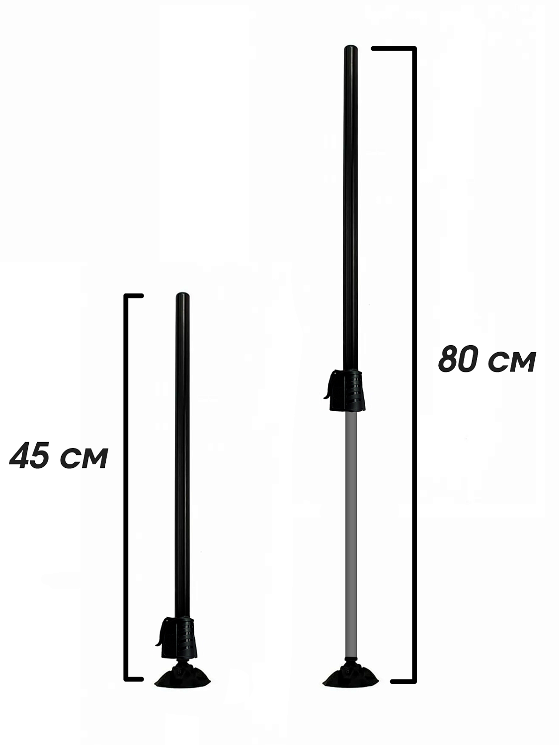 Ее длина в собранном виде составляет 45см (d25), 65см (d36) или 80см (d36) в развернутом 80 и 115 см, и 150 см