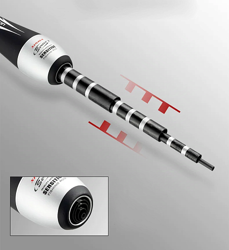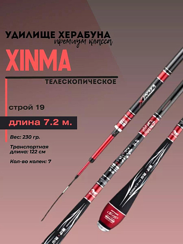 Удочка премиум-класса Xinma обладает медленным, мягким строем независимо от жёсткости. Под нагрузкой сгибается по всей длине согласно своему строю, но гарантированно удержит рыбу. На торце удилища предусмотрено крепление для присоединения к страховочной резине, как и положено классической маховой удочке для рыбалки методом херабуна. Леска крепится к специальному хвостику (веревочному коннектору), который закрепляется на вершинке удочки специальным разъемом.